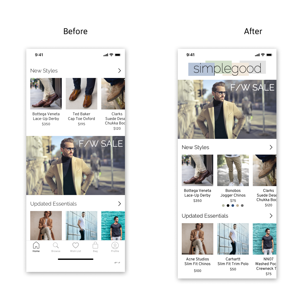 Simplegood is an online men’s clothing store that takes the hassle out of shopping with its thoughtfully selected collections presented in a straightforward, easy-to-use app. Online shopping can be overwhelming and quite the headache. There are often too many options, so shoppers suffer from decision fatigue. The last thing they need is for an app to confuse them even more with unnecessary features.